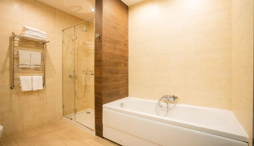 Санузел оборудован биде, ванной или душевой кабиной, тапочками, туалетными принадлежностями, феном и халатом.