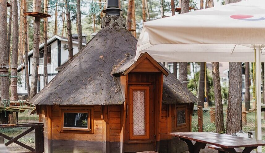 На территории отеля доступны различные беседки, рассчитанные на группы от 2 до 15 человек. Выбирайте место рядом с футбольным полем или уютный гриль-домик у тарзан-парка. В каждой беседке предусмотрена мангальная зона для приготовления ароматных шашлыков. В комплекте уголь (3 кг), розжиг и решётка для гриля.