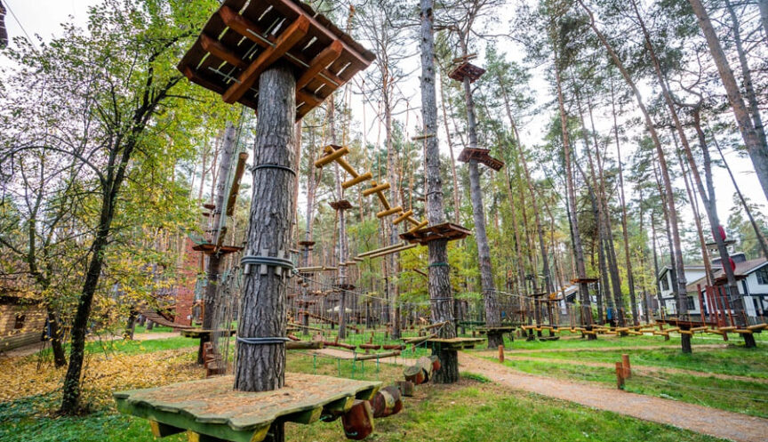 «Тарзан-парк» приглашает всех желающих проверить свою смелость и координацию на высоте от одного до десяти метров.